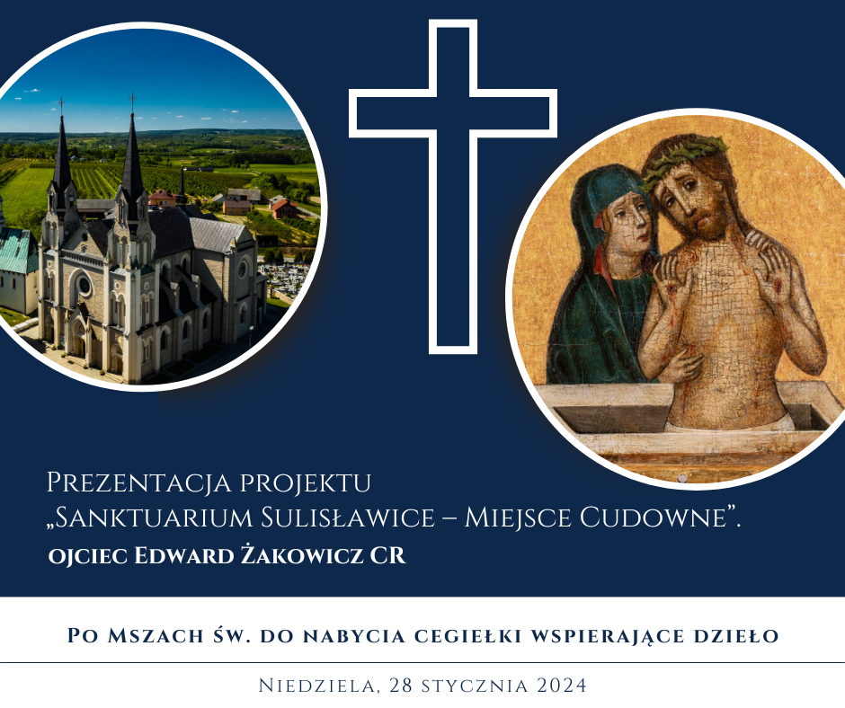 W niedzielę 28 stycznia w naszej wspólnocie parafialnej gościliśmy kustosza Sanktuarium Matki Bożej Bolesnej w Sulisławicach o. Edwarda Żakowicza CR wraz z Braćmi. Ojciec Edward podczas kazań zapoznał nas z projektem „Sanktuarium Sulisławice – Miejsce Cudowne”. – Dwa filmy poświęcone Sanktuarium Maryjnemu w Sulisławicach mają powstać, dzięki zaangażowaniu zakonników i miłośników tego miejsca oraz ofiarności […]