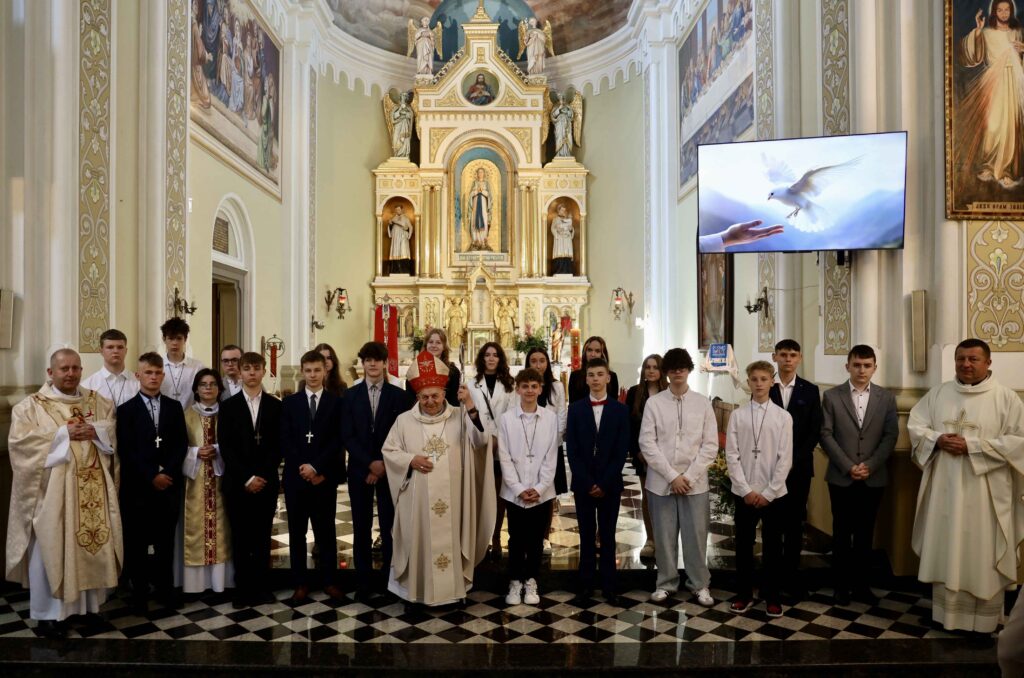 W niedzielę 14 kwietnia grupa 21 młodych z naszej parafii przyjęła z rąk Biskupa Edwarda Frankowskiego sakrament bierzmowania. Uroczystej liturgii przewodniczył bp Edward Frankowski. Mszę Świętą koncelebrowali ks. Leszek Pituch, proboszcz naszej parafii wraz z dziekanem ks. Mariuszem Piotrowskim, proboszczem parafii pw. Matki Bożej Wspomożenia Wiernych w Połańcu. Po rozpoczęciu Eucharystii słowa powitania do Księdza […]