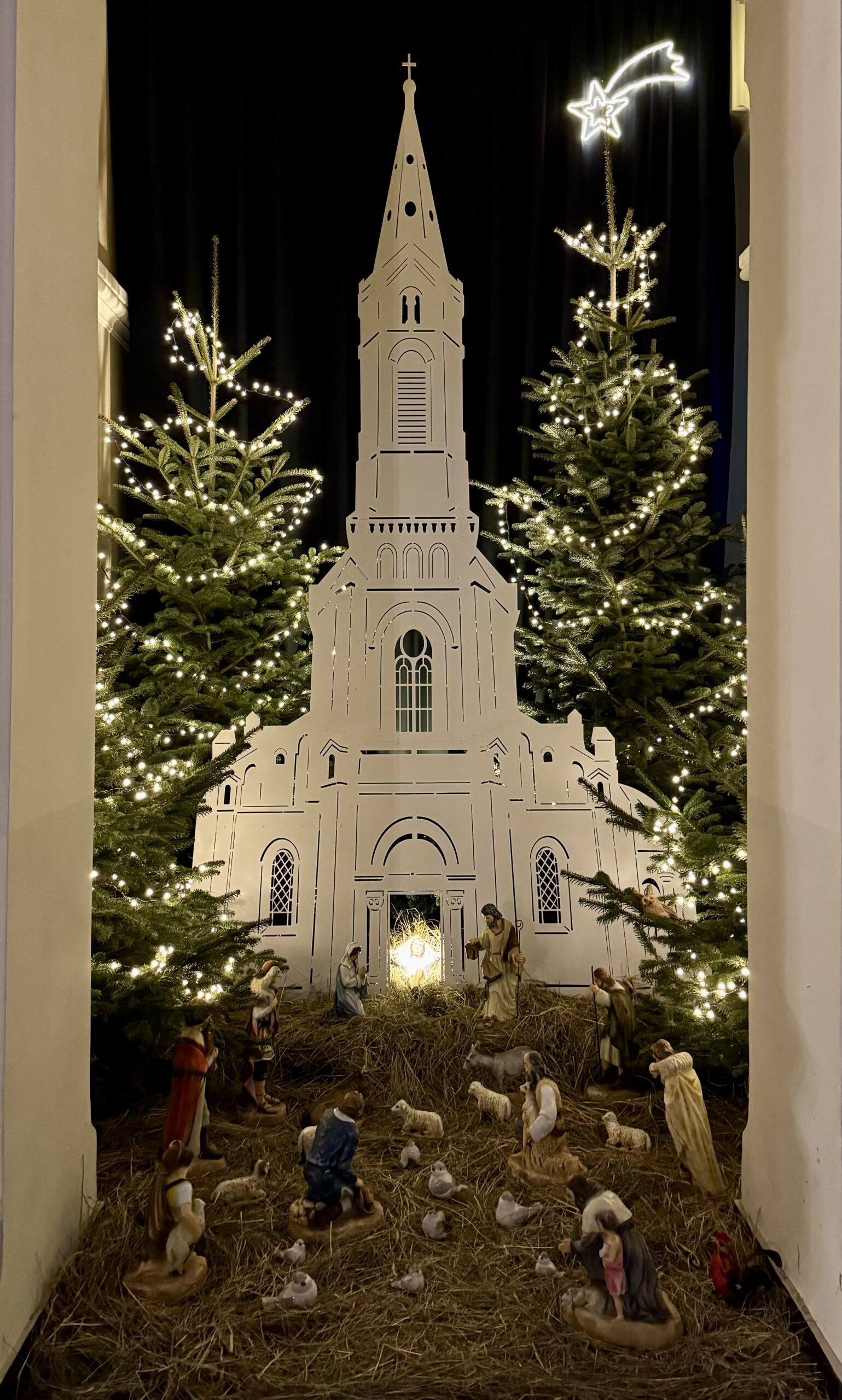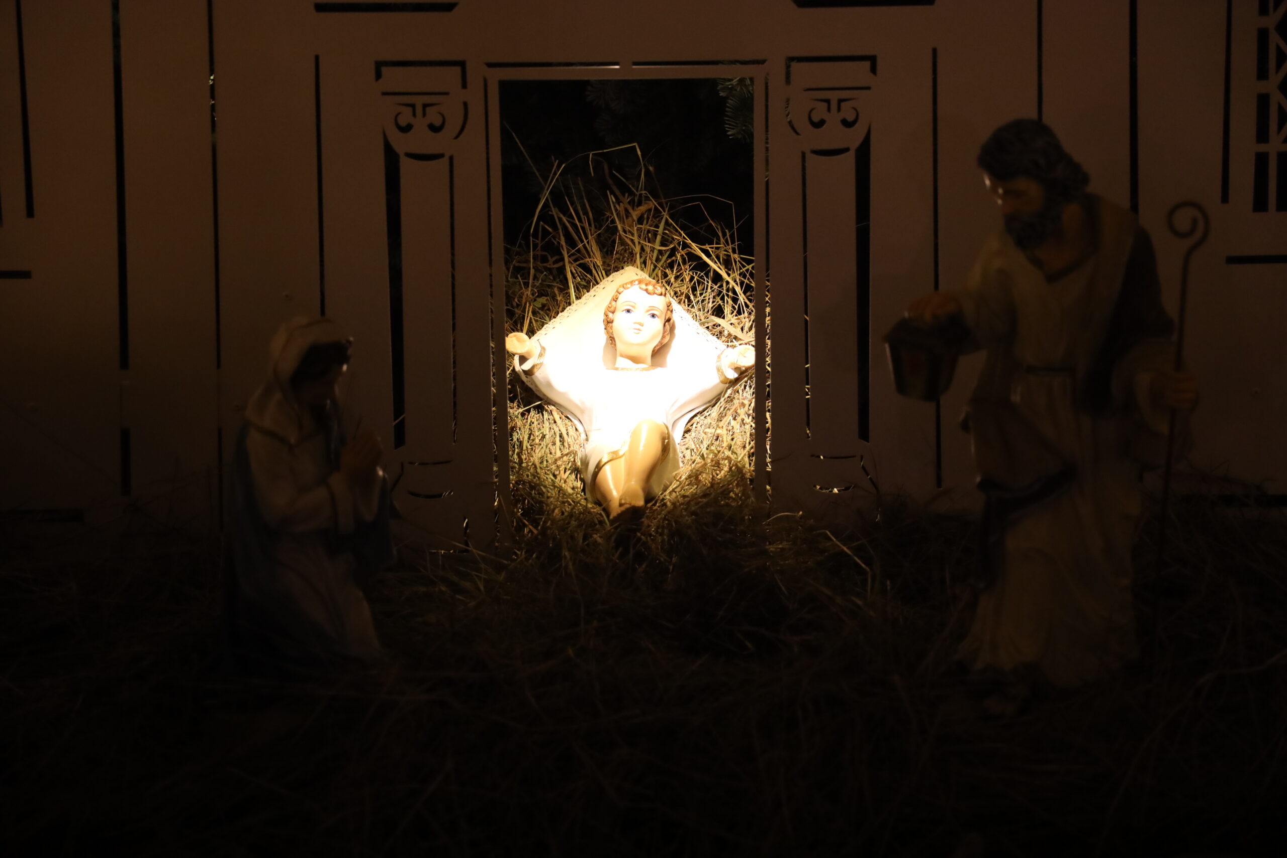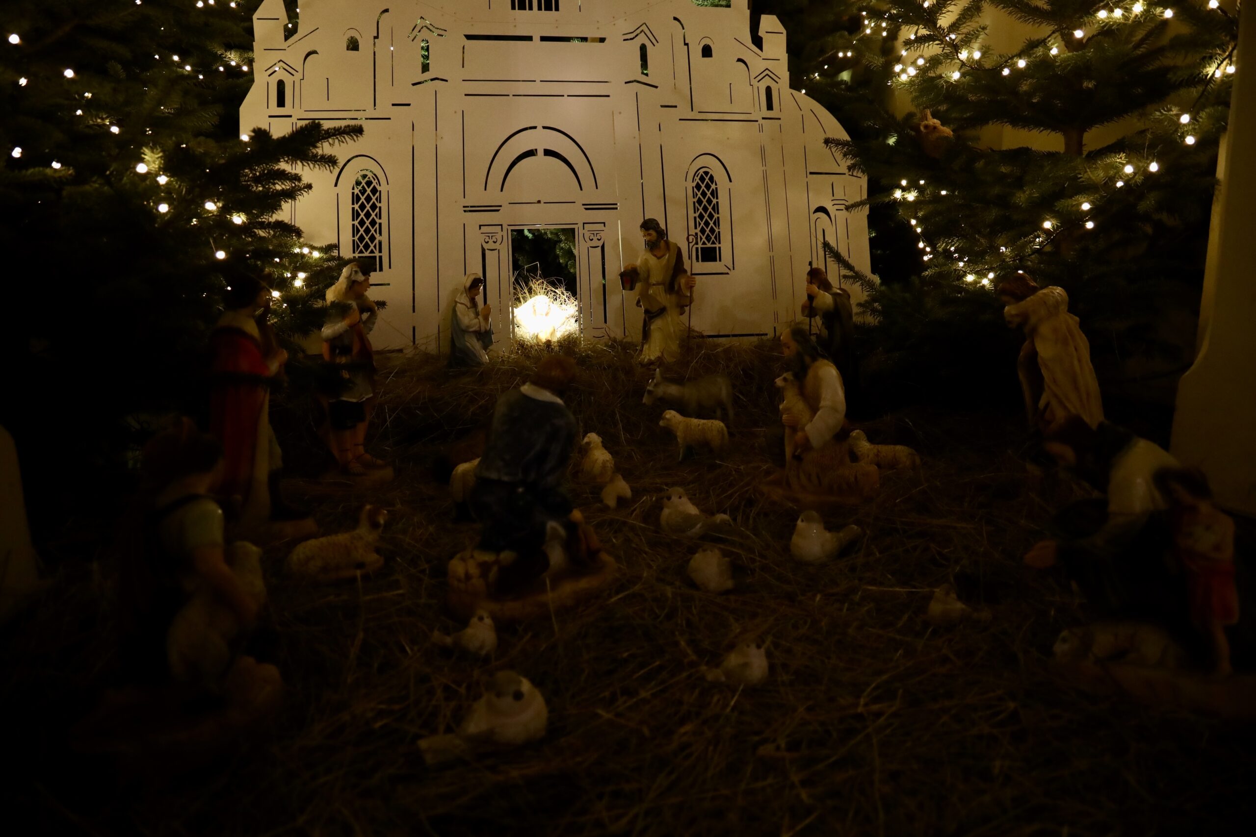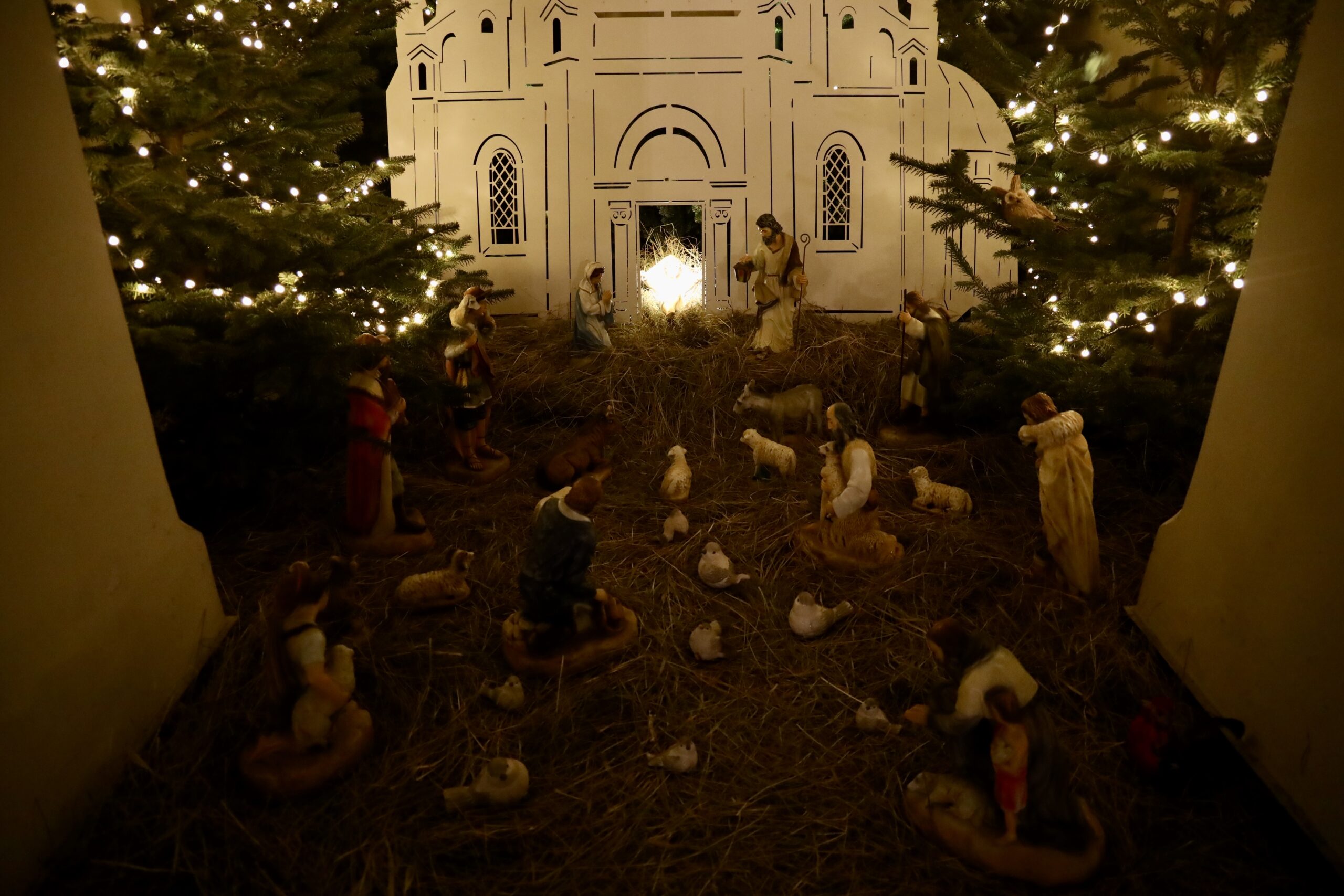 Szczególnym akcentem tegorocznej szopki jest umieszczenie figurki Dzieciątka Jezus we wnętrzu makiety kościoła. Taki układ przypomina, że Boże Narodzenie to nie tylko wspomnienie historycznego wydarzenia, ale rzeczywistość, która trwa w Kościele i w sercach wierzących.