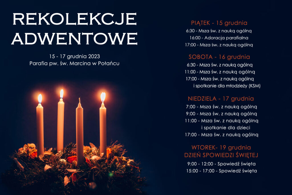 8. W piątek rozpoczynamy czas Rekolekcji adwentowych. Program podany jest w zakładce Aktualności oraz na końcu ogłoszeń.